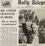 “Throughout this dispute, day after day, television, radio and the press have consistently put over the view of the coal board and government and even when the board and government have been exposed as being guilty of duplicity and guilty of telling lies, not only to the House of Commons but also to the British public, this bunch of piranha fish will go on supporting Mrs Thatcher. (More cheers) (Arthur Scargill, Jubilee Gardens, London, 7.6.1984)