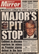 “Hezza’s U-turn on pits” was the Sun’s headline. “Major’s pit stop” was blazoned across the Daily Mirror’s frontpage report on the Prime Minister’s “sensational and humiliating climbdown.”