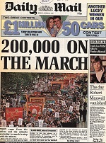 Filling all the front pages were pictures of a march through London organised by the NUM, to coincide with the critical House of Commons vote, which attracted 100,000 protestors and drew support from across the capital. Twice as many attended the TUC’s mass rally in Hyde Park the following Sunday.
