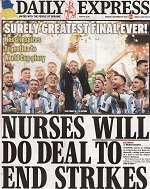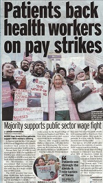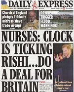 ‘Nurses will do deal to end strikes’ (19.12.2022) and followed it a month later with a direct appeal to the Prime Minister, ‘Nurses: clock is ticking Rishi…do a deal for Britain’ (11.1.2023). Express columnist Stephen Pollard threw his weight behind the strike: ‘The nurses’ case is overwhelming. Do the right thing Rishi.’ (7.2.2023).